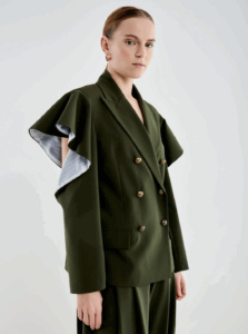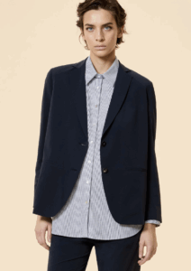 Dimentichiamo il blazer rigido da boardroom. La nuova versione è fluida, leggera, quasi impalpabile. Spalle morbide, linee allungate, tessuti naturali come lino e cotone tecnico, guizzi particolari.